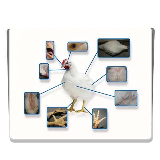 - تاج رنگ پریده، چشمهای کدر و غیر شفاف، ظاهر پرهای غیر شفاف و پرهای افتاده و ژولیده نشان دهنده وضعیت غیر عادی در گله میباشد.